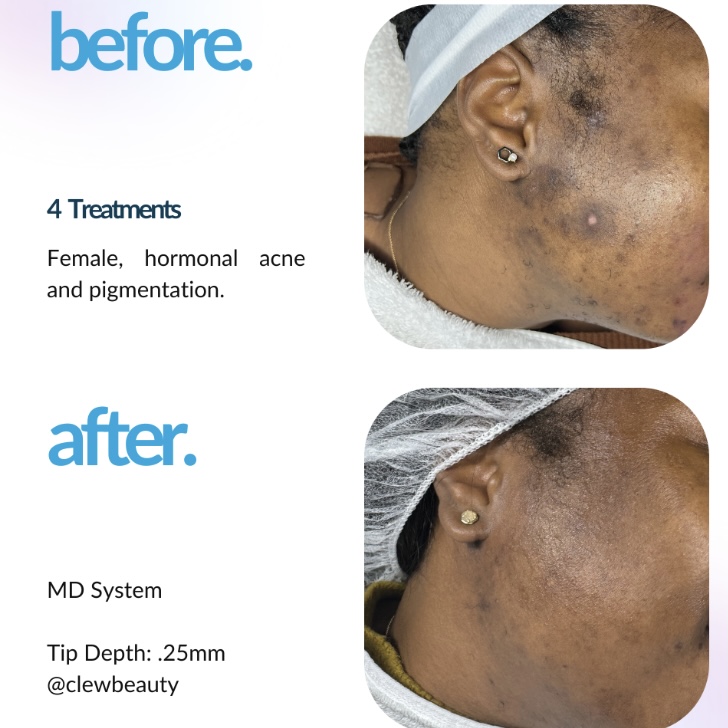 A treatment that triggers the skin’s healing response through thousands of microchannels, deep enough to activate collagen while gentle enough to avoid major downtime. Smooths over acne pit scarring, wrinkles & surgical scars, minimizes the appearance of melasma and helps regrow dormant hair follicles.